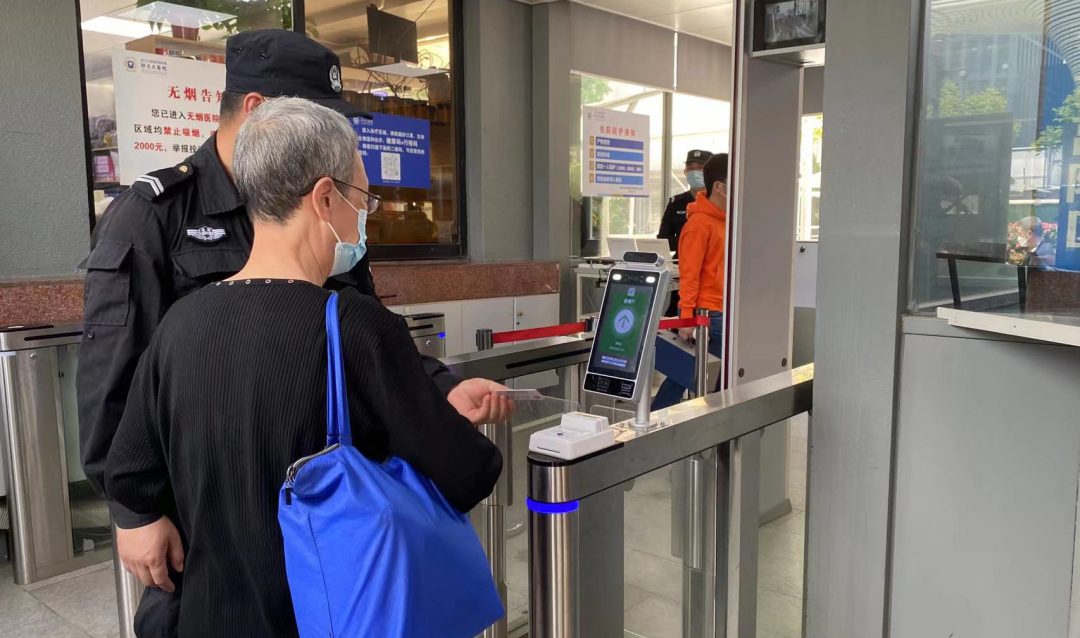 當(dāng)天,在現(xiàn)場保安的指導(dǎo)下,一位老人試探性的打開手機(jī)掃了健康碼,同時(shí)完成了體溫測溫,閘機(jī)便打開了,她十分驚喜,連連夸贊“今天進(jìn)醫(yī)院速度快,不用排長隊(duì),只要一個(gè)健康碼就可以了”。