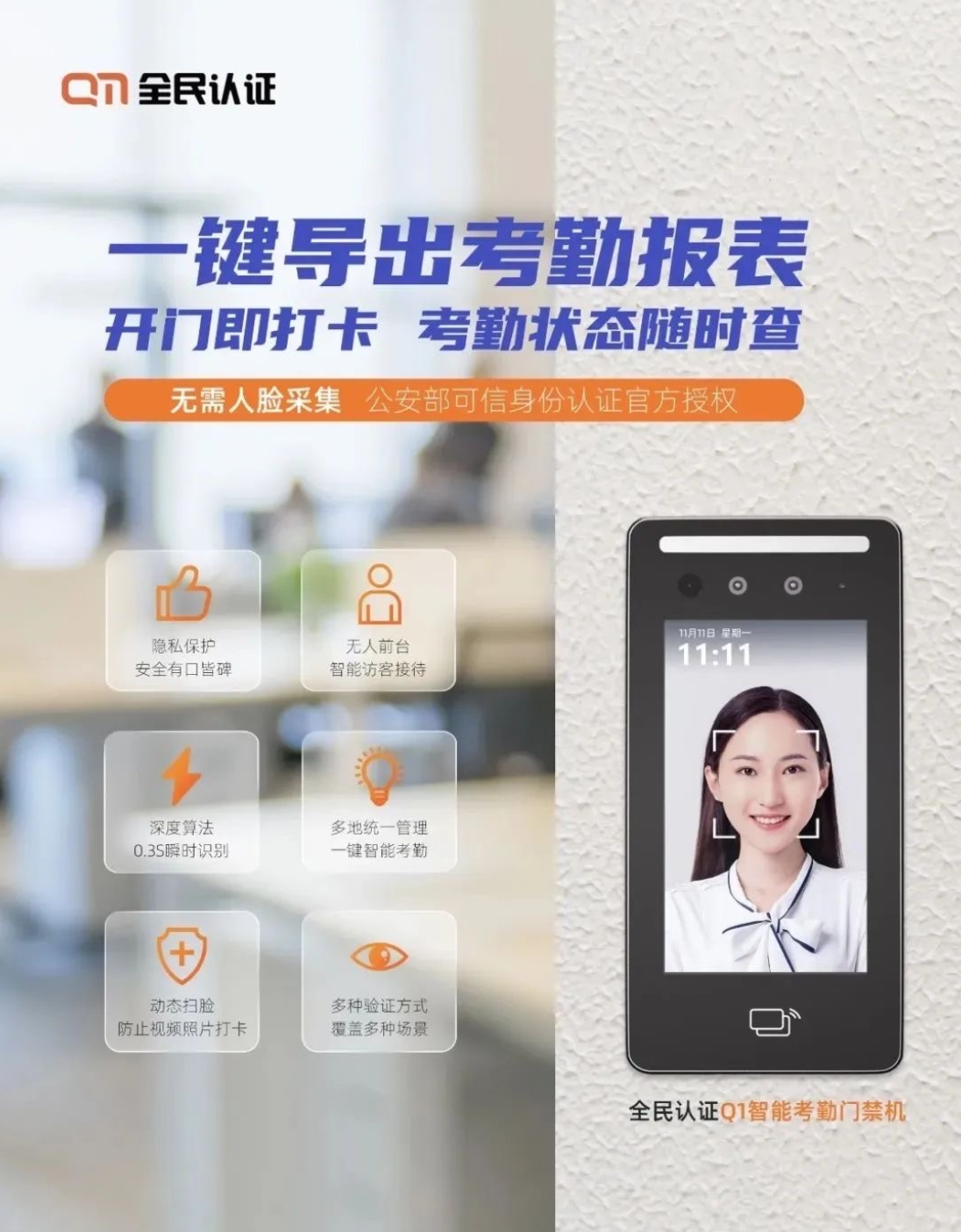 全民認(rèn)證智能考勤門禁機與釘釘?shù)瓤记谙到y(tǒng)無縫聯(lián)動,無需進(jìn)行人臉采集,掃臉即可實現(xiàn)考勤打卡;為管理者實現(xiàn)實人實地實時考勤管理,為員工提供更靈活便捷的考勤服務(wù),開啟辦公樓宇“一臉一機一平臺”智慧管理現(xiàn)代化新模式!