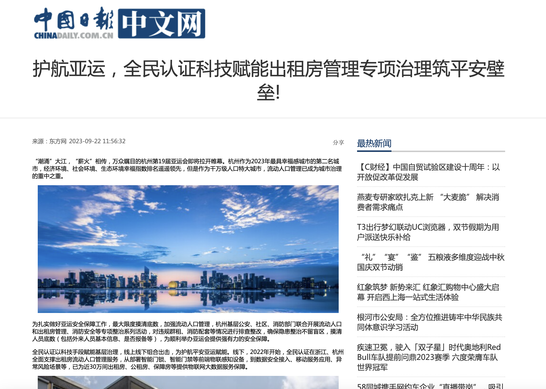 目前,全民認(rèn)證已推動(dòng)建設(shè)浙江、江蘇、云南、福建等多地城市出租房、網(wǎng)約房、人才房等的智能化終端部署及管理運(yùn)營,賦能城市基層社會(huì)治理流動(dòng)人口數(shù)據(jù)化管理。同時(shí),為保障平安亞運(yùn),也為杭州市建筑工地提供智慧化管理和服務(wù),減少安全隱患,全民全力以赴做好亞運(yùn)安全服務(wù)保障工作。