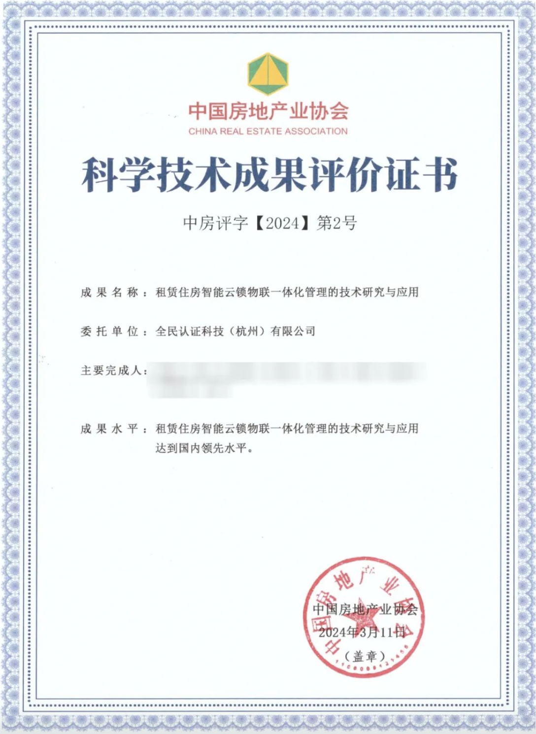 近日,全民認(rèn)證“租賃住房智能云鎖物聯(lián)一體化管理的技術(shù)研究與應(yīng)用”通過科學(xué)技術(shù)評價(jià),獲評達(dá)到國內(nèi)領(lǐng)先水平!