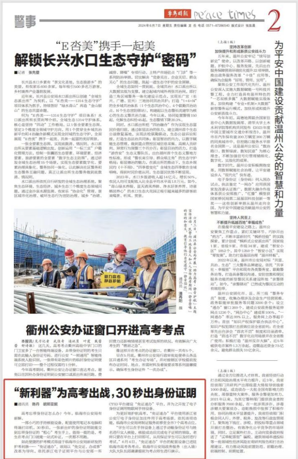 為2024年臨海高考點保駕護航(平安時報媒體報道)