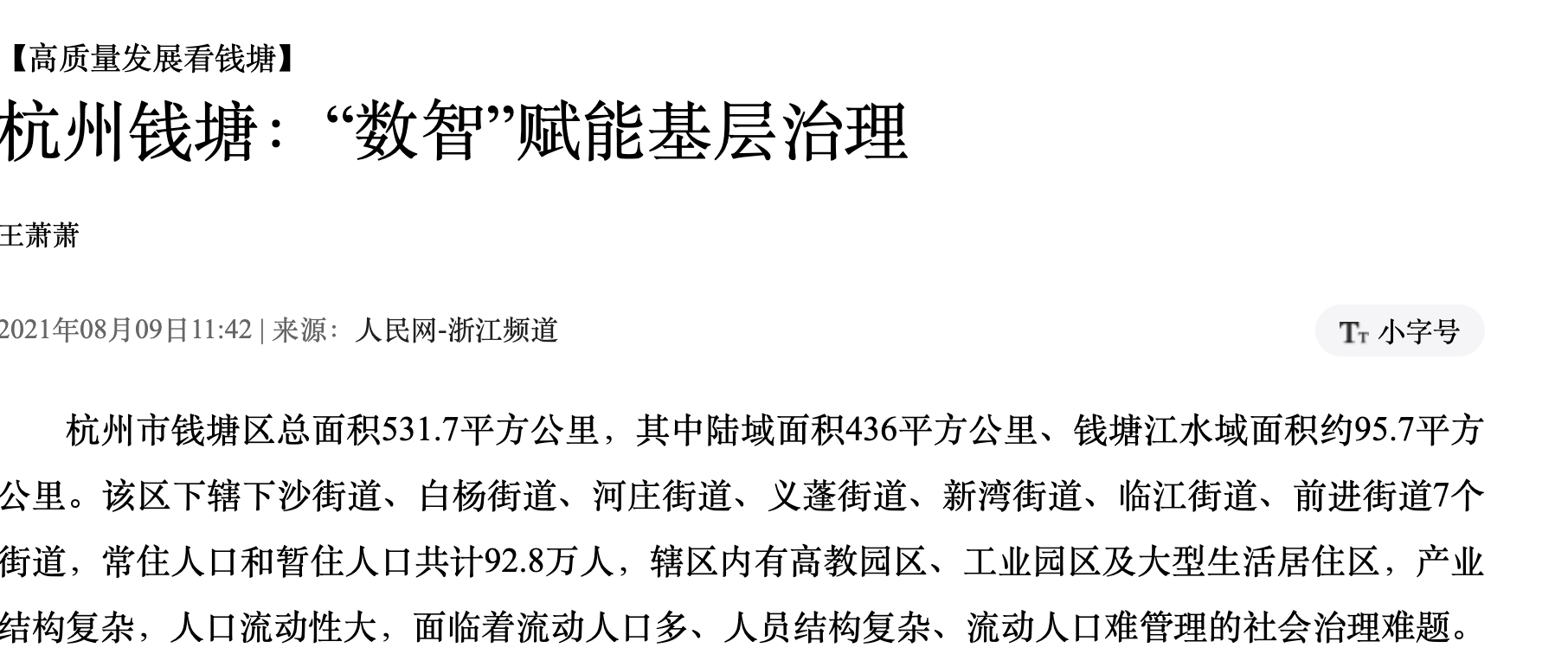 8月10日,人民網(wǎng)以“杭州錢塘:“數(shù)智”賦能基層治理”為題,以“如何利用數(shù)字為智能治理賦能,讓錢塘區(qū)老百姓享有更加安全和舒心的生活生產(chǎn)環(huán)境”為思考,報道我司為杭州錢塘推廣部署物聯(lián)網(wǎng)智能終端,助力錢塘數(shù)字法治建設(shè)。